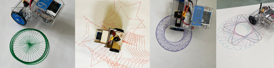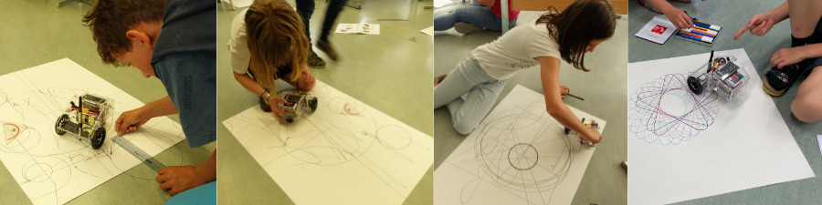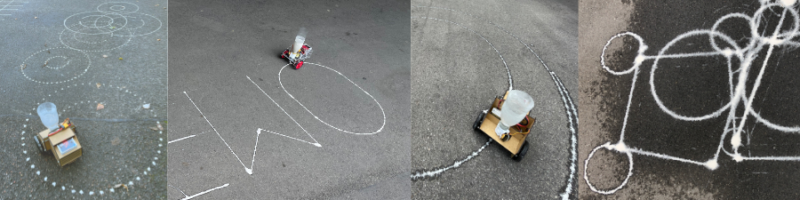 Linien mit Roboter auf ein grosses Papier oder auf den Pausenplatz zaubern.