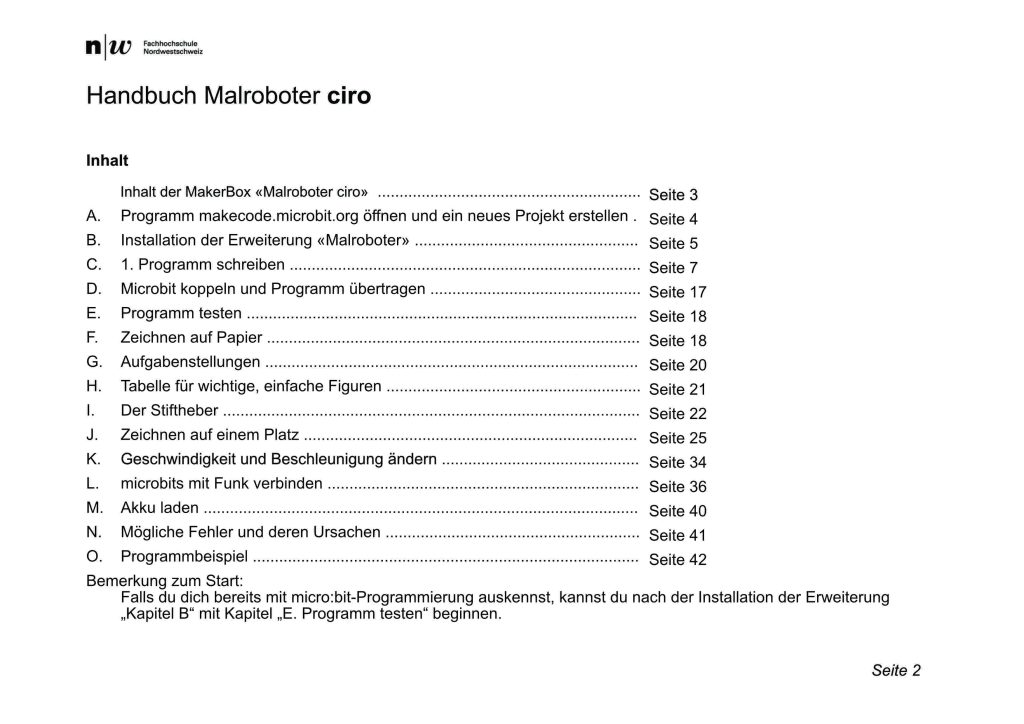 Ein Handbuch informiert über alle nötigen Schritte und Möglichkeiten bei der Programmierung und dem Einsatz der Malroboter ciro.