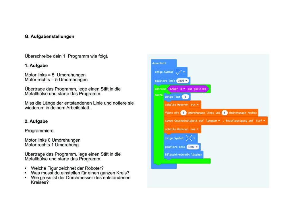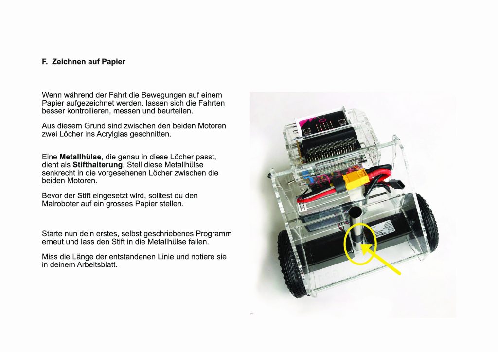 Linien mit Roboter auf ein grosses Papier oder auf den Pausenplatz zaubern.