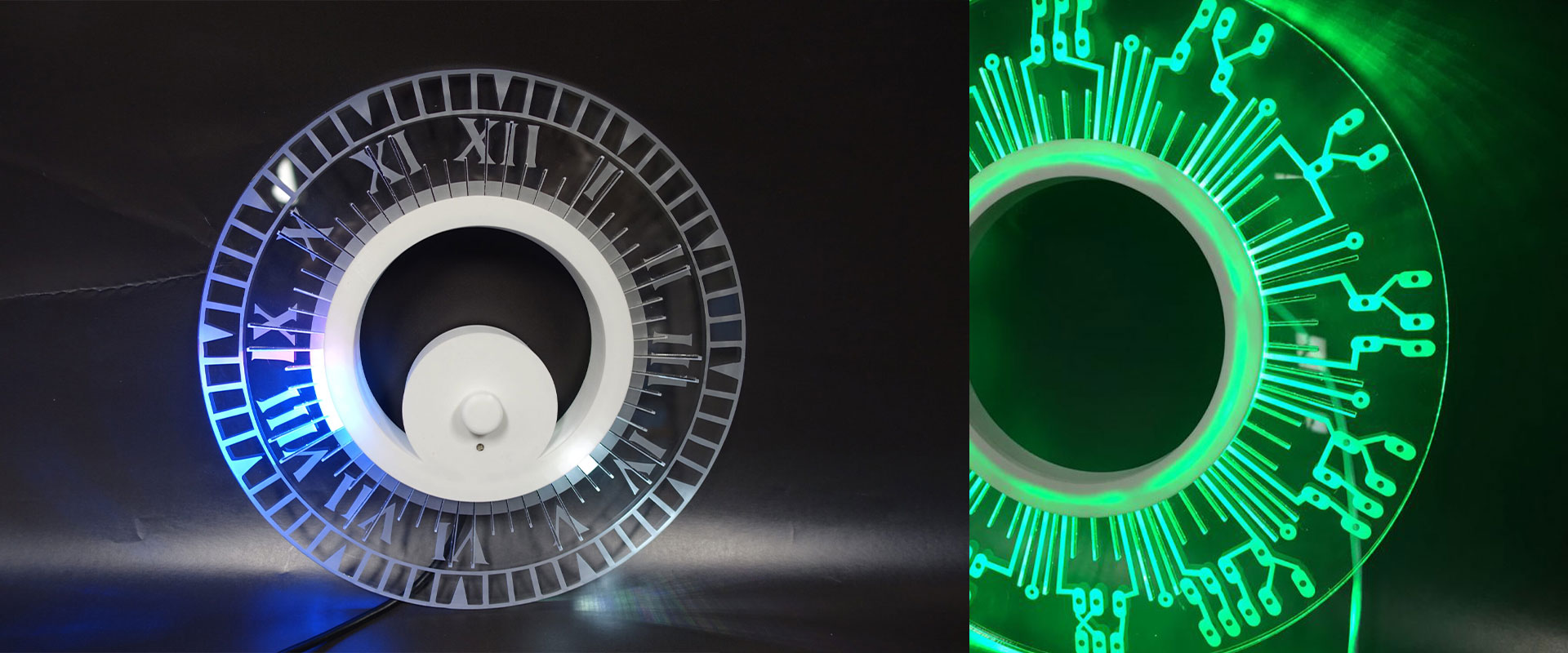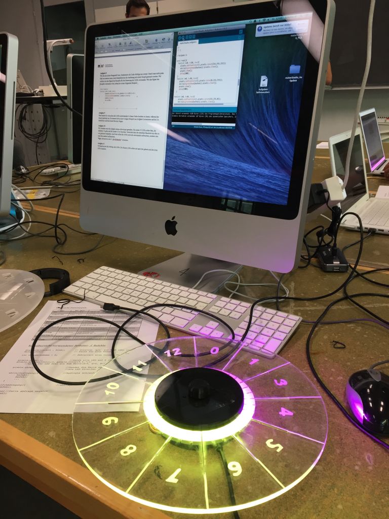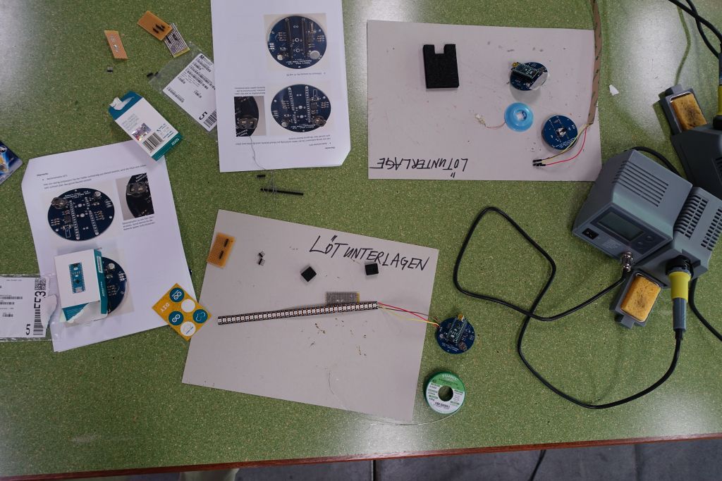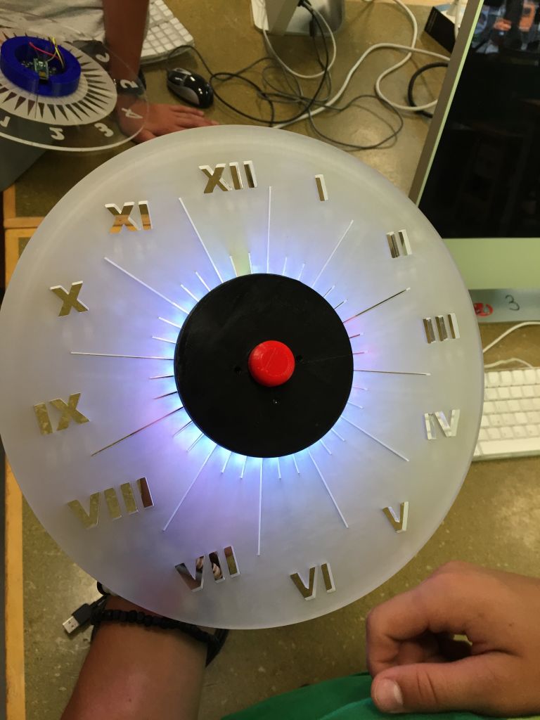 Die Herstellung der MakerClock umfasst alles, vom digitalen Zeichnen und Lasercutten des Zifferblattes, über das Zusammenlöten der elektronischen Komponenten, bis hin zur Programmierung des Mikrocontrollers.