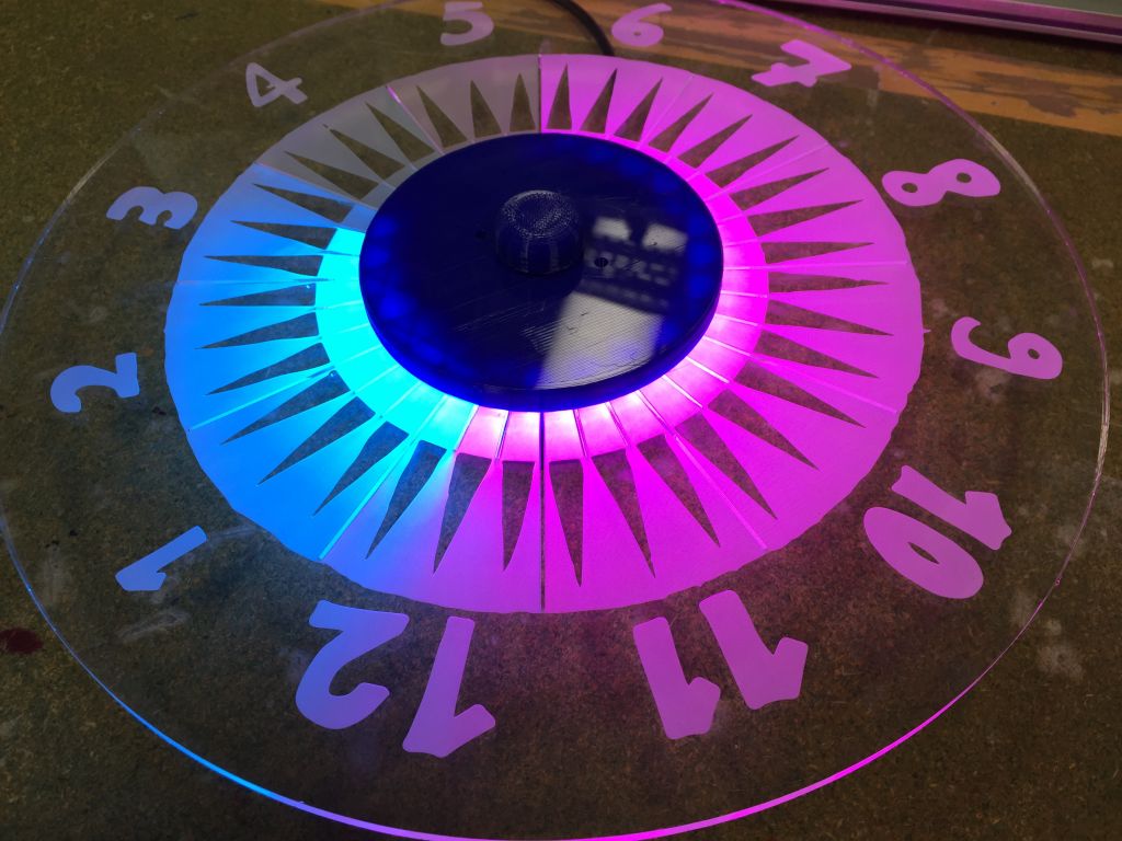 Nach dem Fertigen des Zifferblattes geht es nun an das Herzstück der Uhr. Der Arduino wird mit dem LED-Strip und weiteren elektronischen Komponenten verlötet und in das 3D-gedruckte Gehäuse eingesetzt.