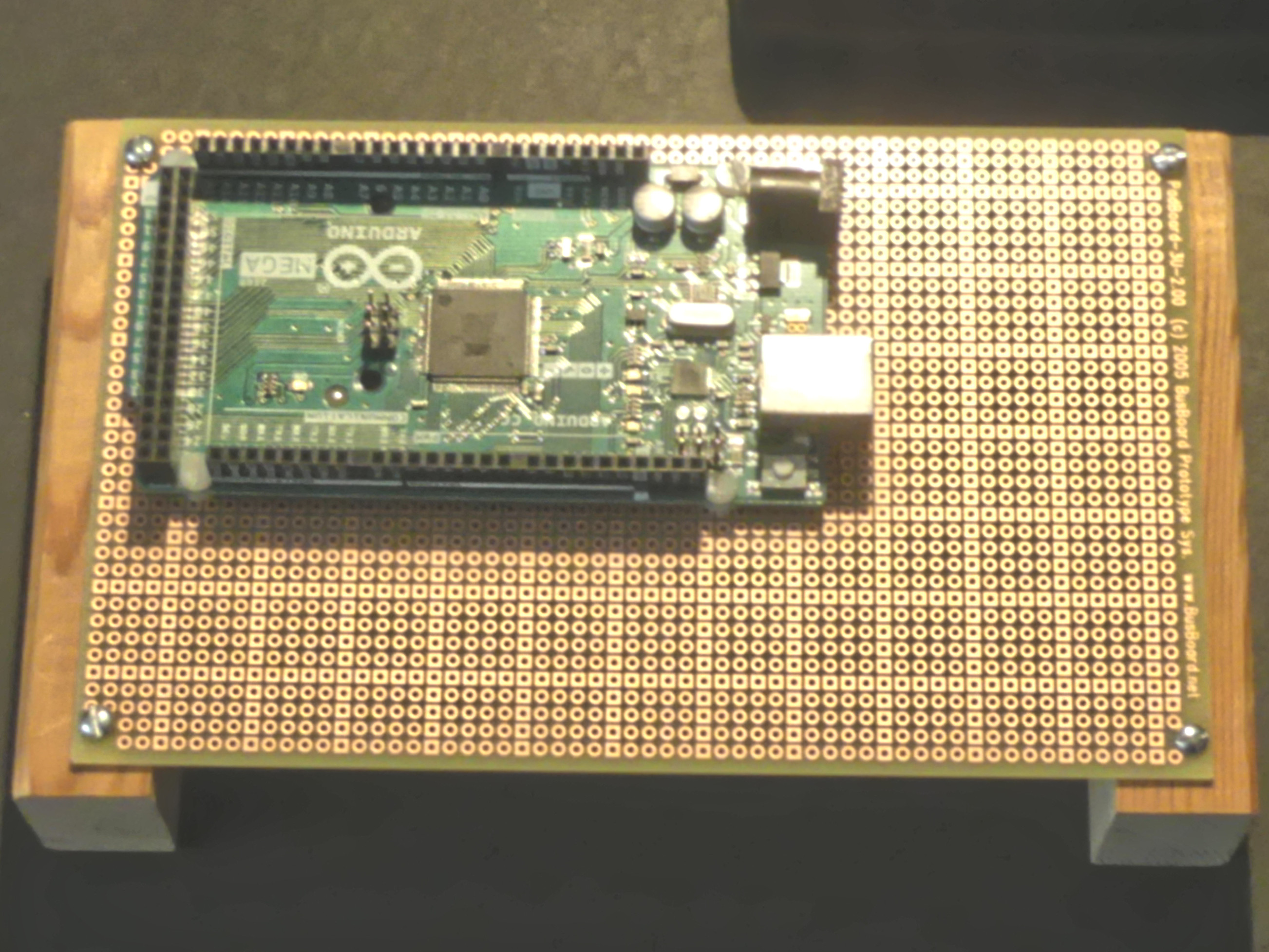 ![]() | Blick ins Innere der Box auf Prozessor-Board mit Huckepack-Modulen (Shields) |